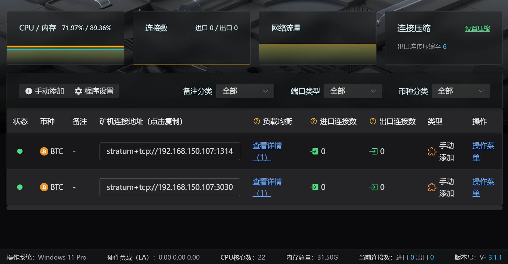 公网数据流量体积压缩可达1000% - 2000%, 约10-20倍的体积压缩,支持负载均衡,搭配中转使用。 本地隧道、数据压缩、加密、公网连接数压缩的强大本地客户端,极限降低延迟,防止中间人攻击, 最大限度提升安全性及矿场收益。